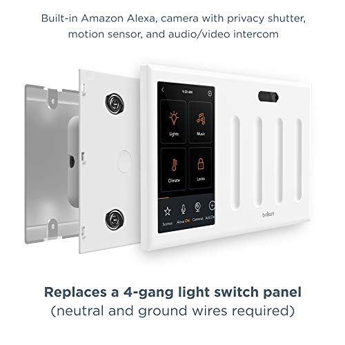 EASY SMART HOME CONTROL FOR EVERYONE: Brilliant touchscreen panels with built-in Alexa make it easy for everyone at home to control popular smart devices, lighting, cameras, locks, thermostats, intercom, scenes and more by simply replacing a light switch.