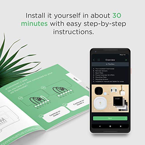 EASILY INSTALL YOURSELF: It only takes about 30 minutes, thanks to an easy to follow installation guide and an in-app step-by-step walkthrough. Everything you need comes in the box, including a Power Extender Kit for homes with no common wire (C-wire). Compatibility- Gas, oil, electric, dual fuel, Conventional (2H/2C), Heat Pump (4H/2C), Humidifier, Dehumidifier, Ventilator, HRV or ERV